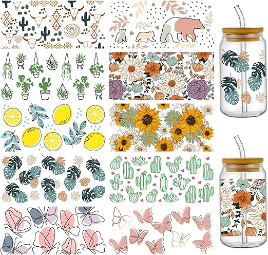 Plants & Butterflies DTF Stickers | UV Direct to Film | UV Stickers | 16oz tumbler wraps | 10 Pack