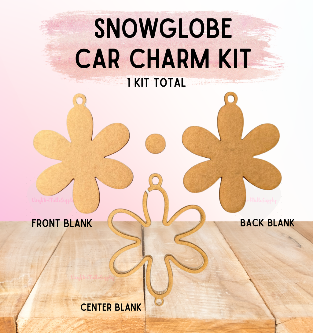 Snow Globe Ornament Kit | Thick 1/4" Fillable Acrylic Blanks | Car Mirror Charms - Daisy Flower