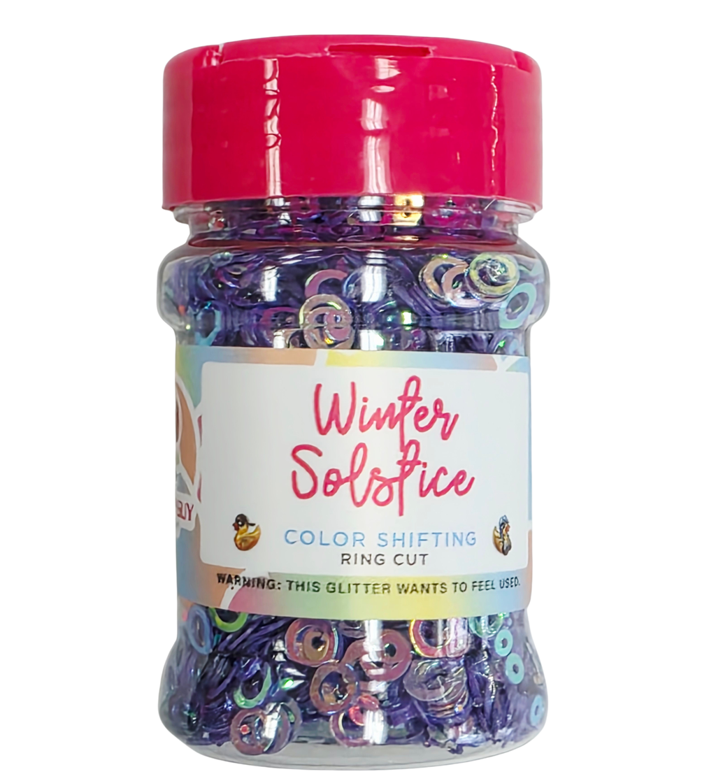 Winter Solace is holographic purple color shift rings head shape cut glitter.