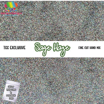 Sage Haze is a custom mixed blend of blue, purple, pink and silver fine cut (0.010 or 1/96) glitter.
